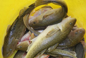 Le poisson des chenaux doit être semi-gelé afin de faciliter l’éviscération. Vérifier à l’aide de l’index l’état semi-gelé en exerçant une pression sur la peau du poisson,
